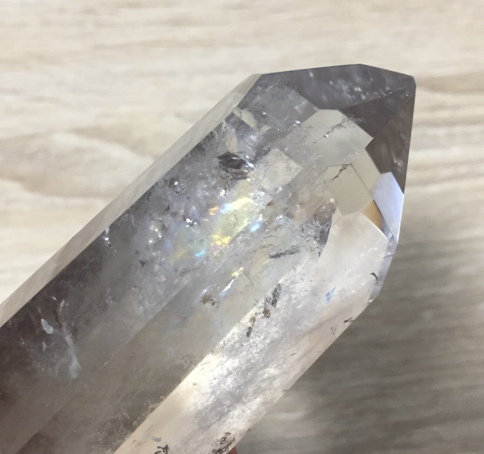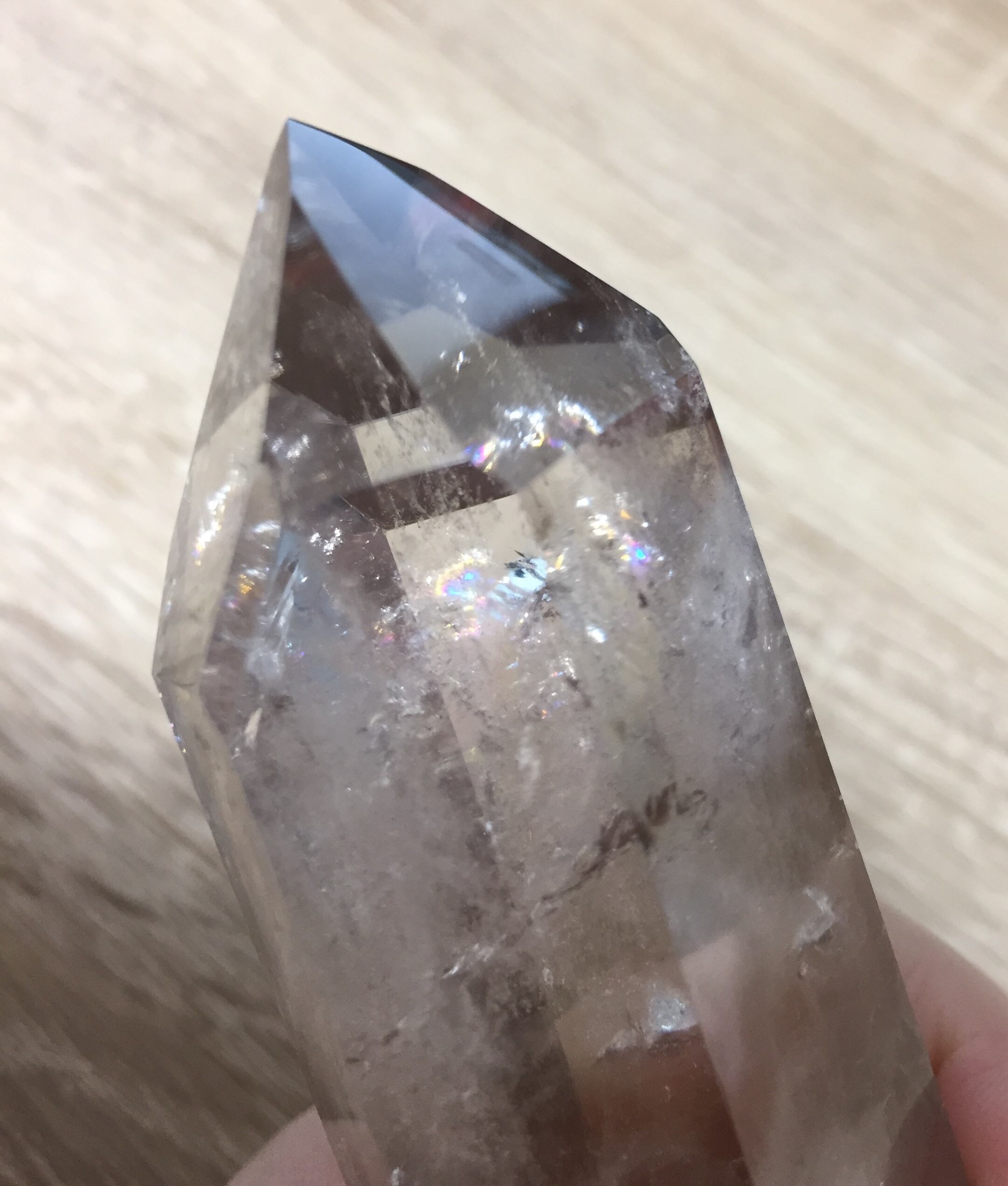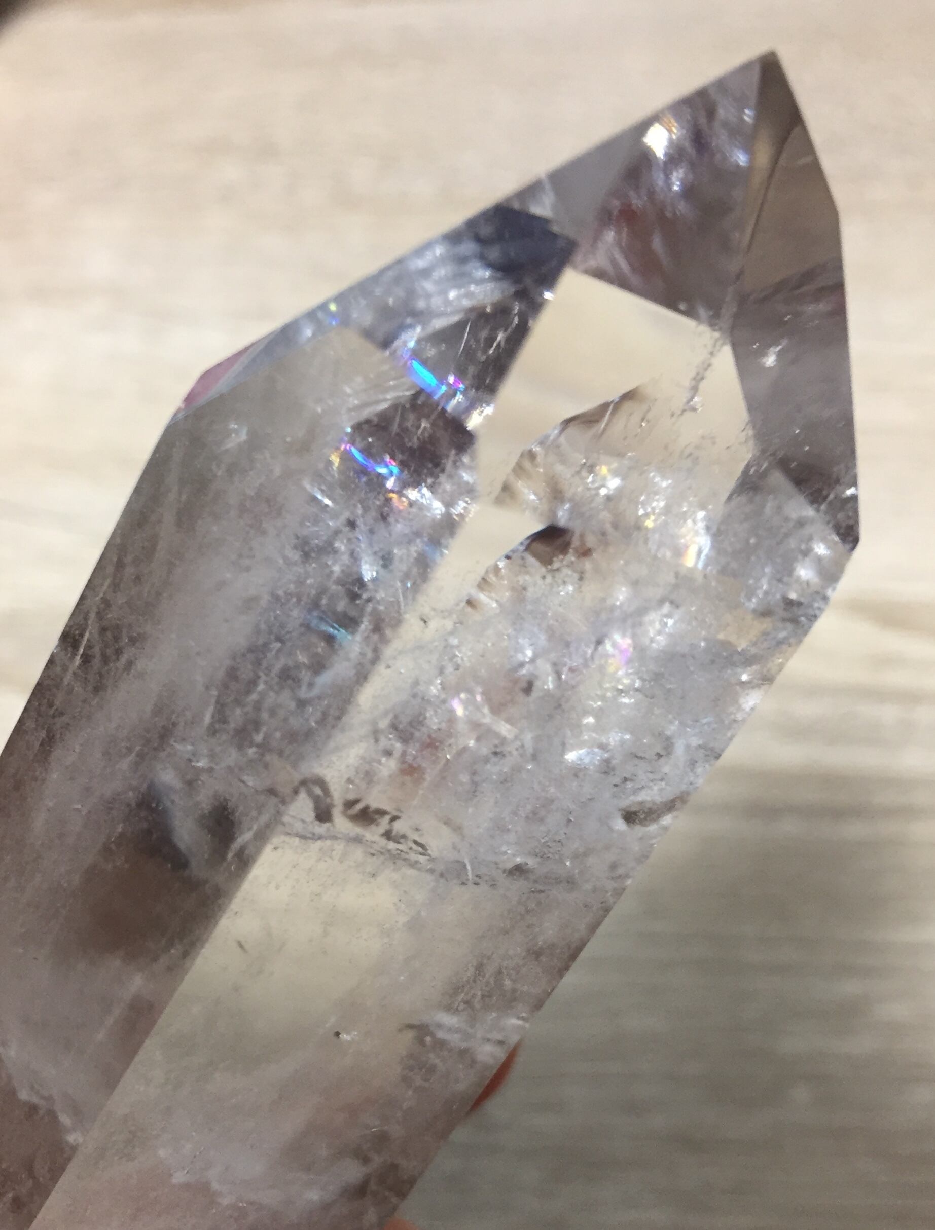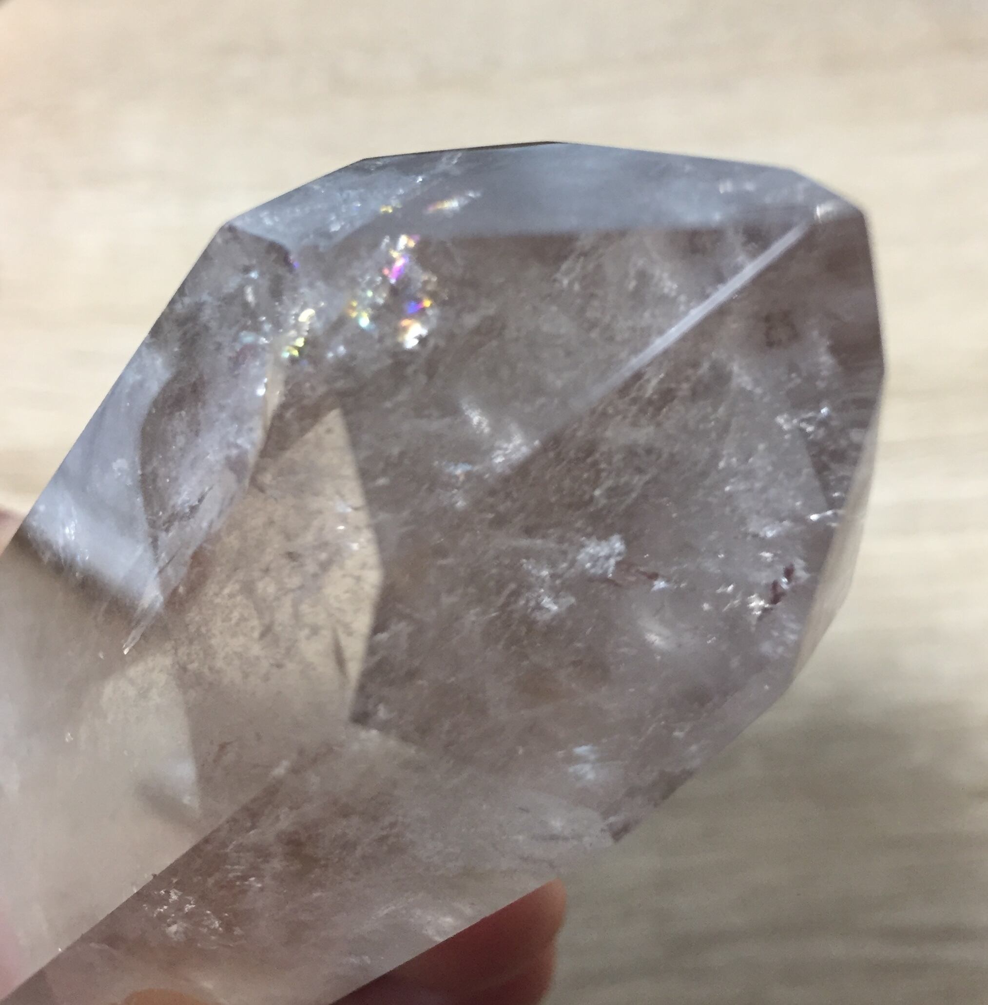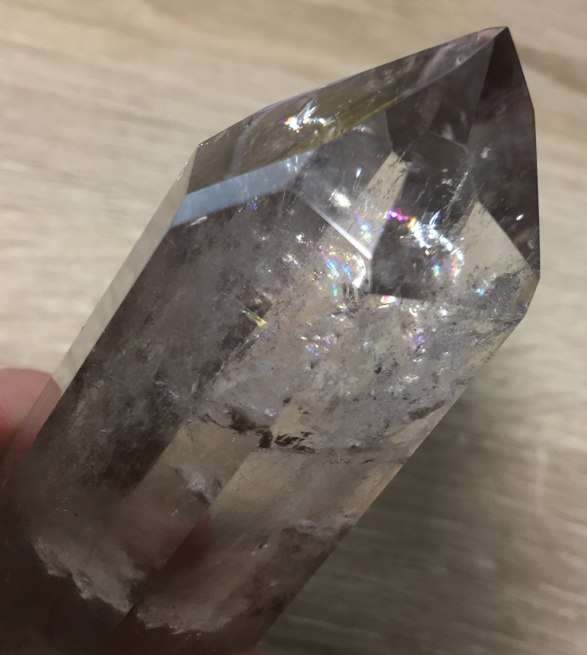 透明度が高く、茶系がかったグレーのお色です。内側には沢山の虹を内包しています。