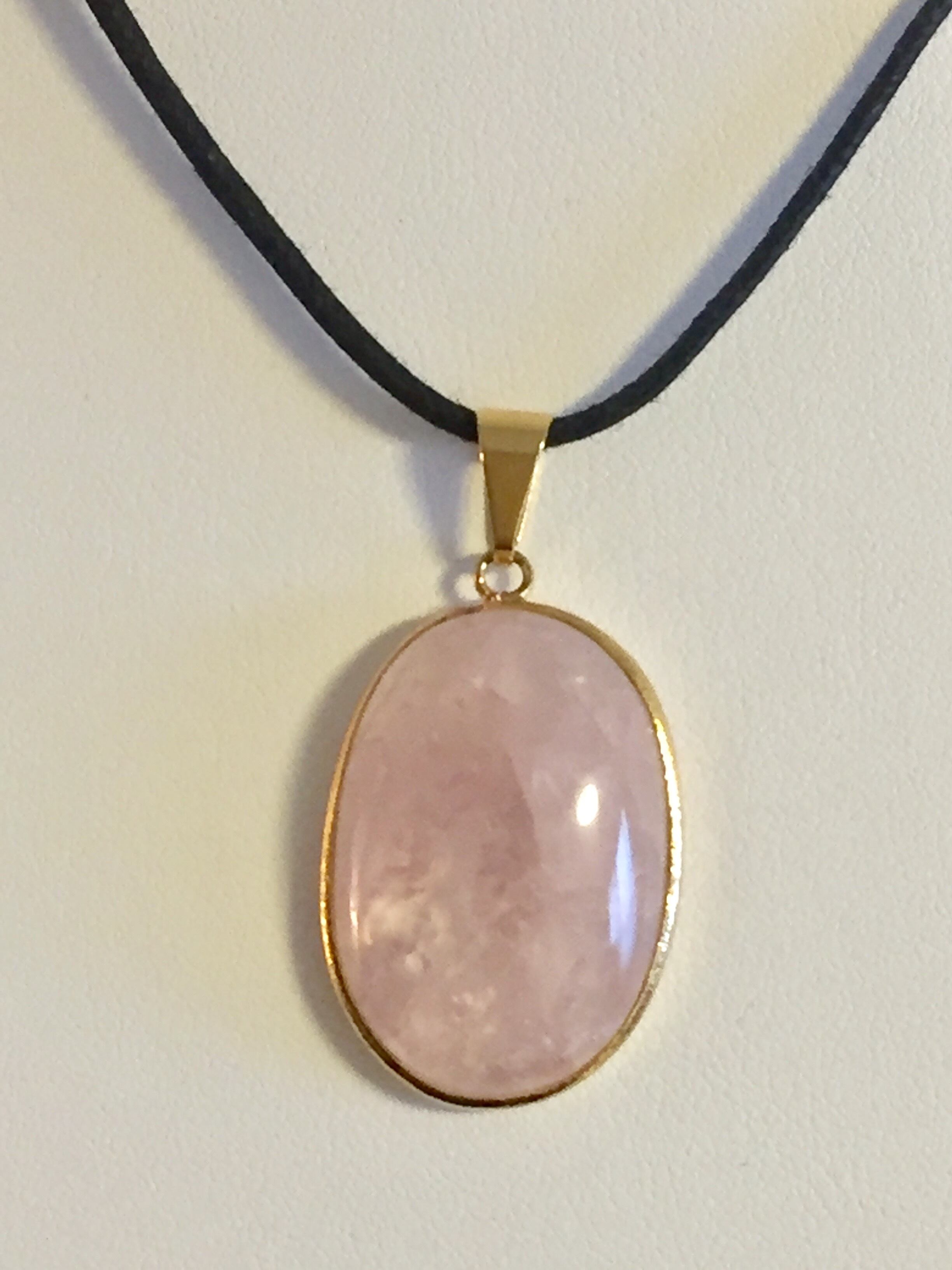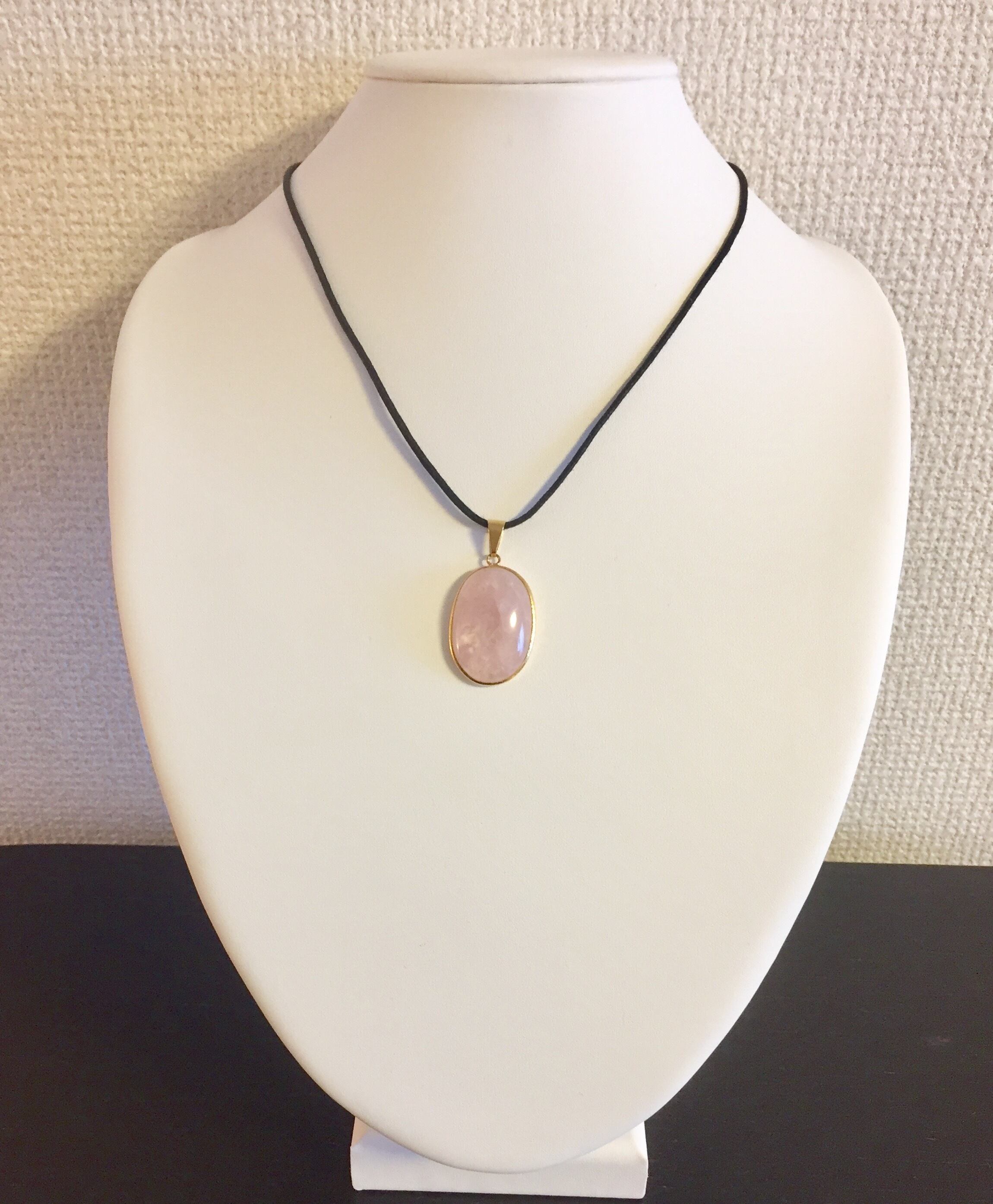 このオーバル型のローズクォーツは、透明感とツヤに溢れ、安定した穏やかで暖かい波動をもっています。写真には上手く出ませんでしたが、少し斜めにすると内部にとても綺麗な虹を内包しています。