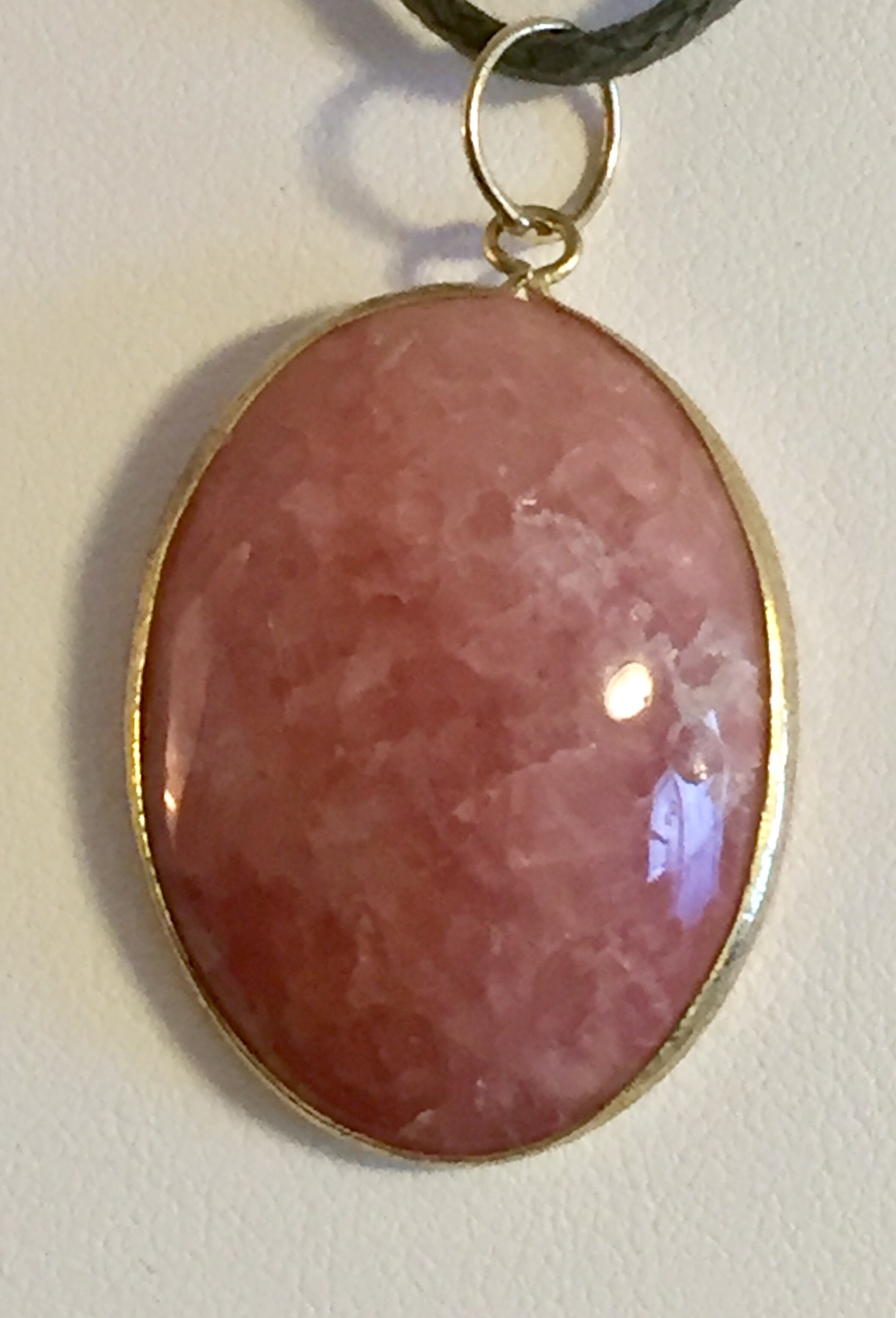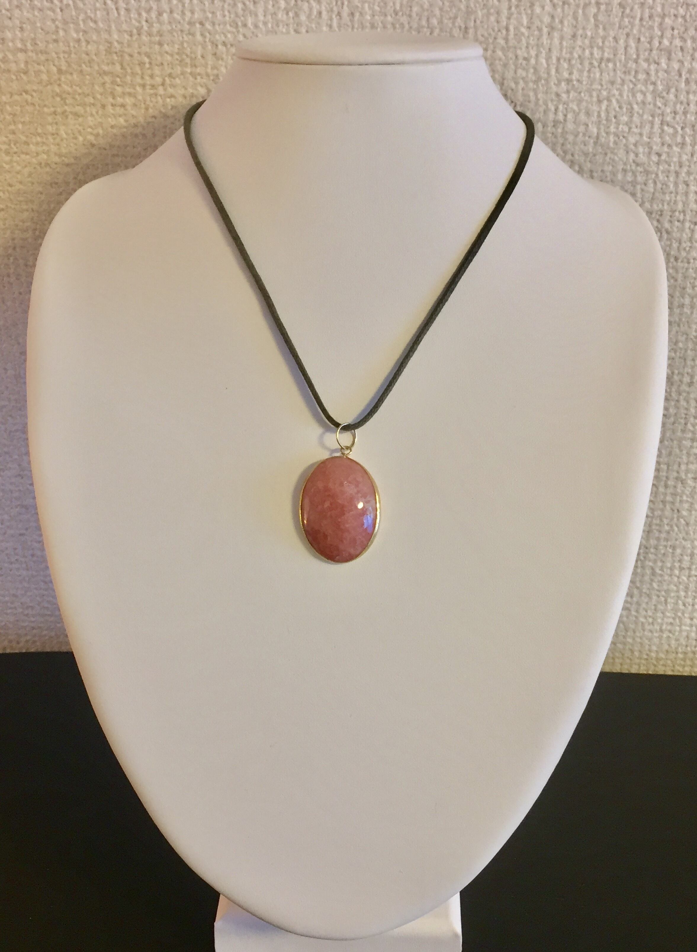 このオーバル型のローズクォーツは、濃いめのピンク色がとても印象的なお品です。サイズも大きめで、存在感があります。